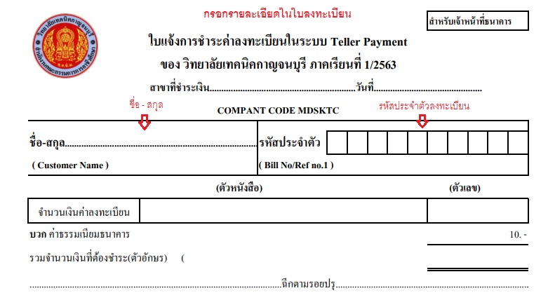 1.ดาว์นโหลดใบลงทะเบียนชำระเงิน ระดับชั้นที่ได้สมัคร ตามลิงค์ด้านล่าง2.กรอกชื่อ – สกุลและรหัสประจำตัวลง ทะเบียน3.ชำระเงินผ่านธนาคารกรุงไทยทุกสาขา4.ระบบจะทำการตรวจสอบสถานะการ ชำระเงินและแจ้งผ่านทางหน้าเวป ไชต์วิทยาลัยฯ